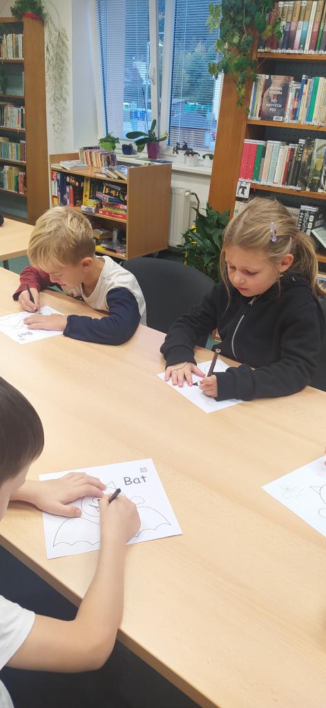 Naučili se první písmena a slabiky, a tak navštívili knihovnu, aby mohli předvést, jak jim to krásně jde. Za odměnu nechybělo halloweenské tvoření.
