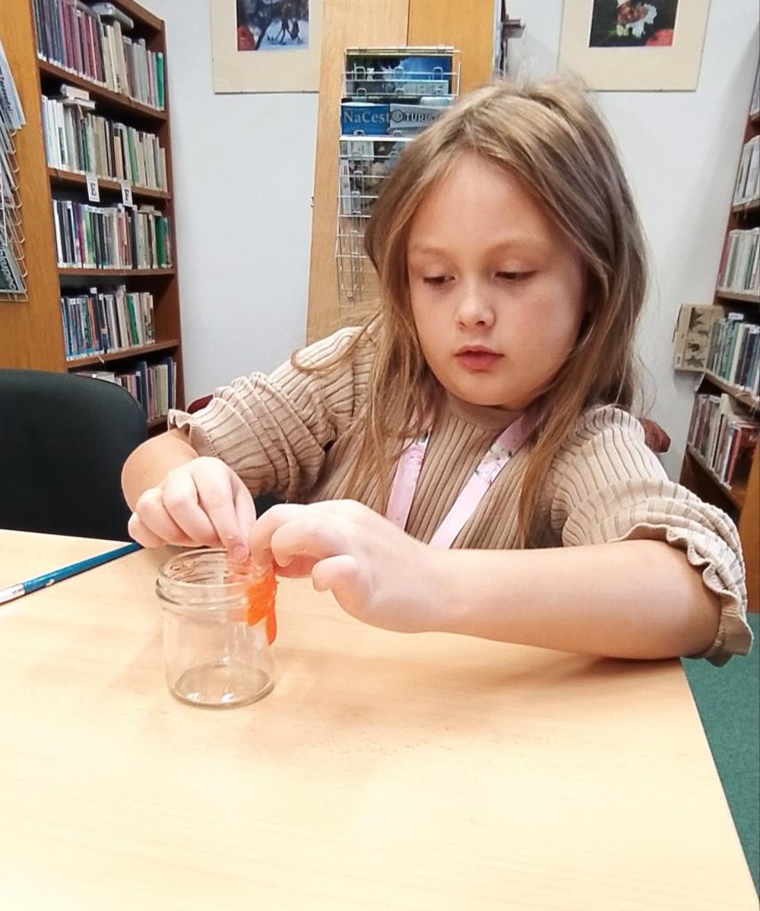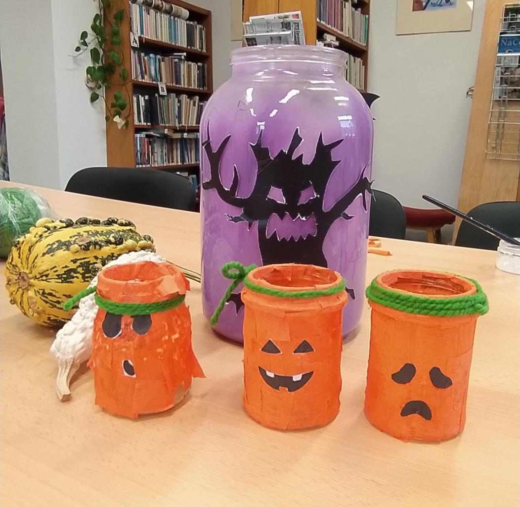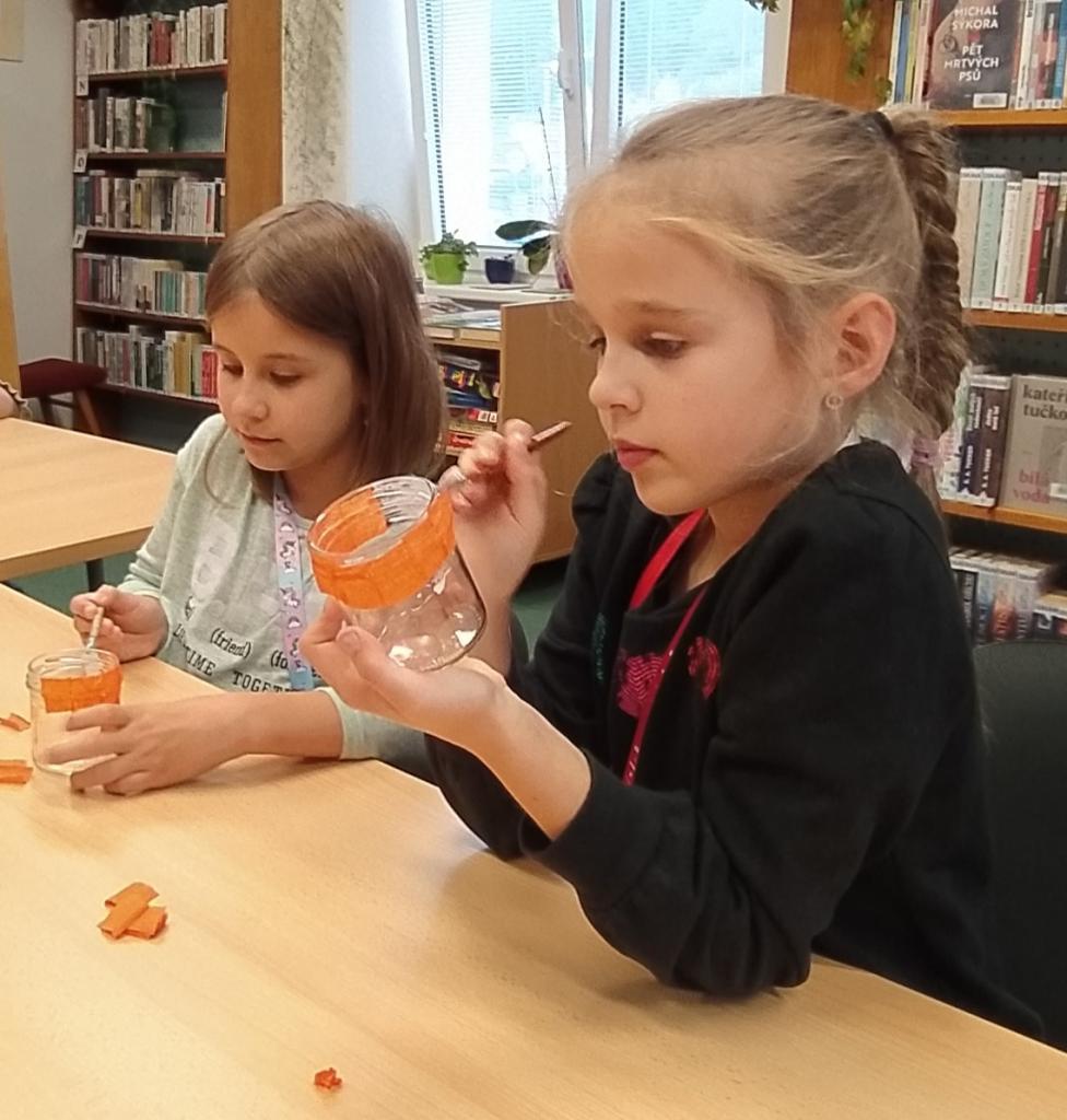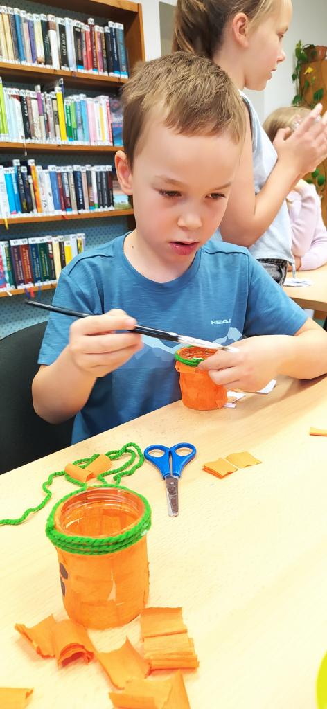 Děti, které mají rády Halloween si do naší knihovny přišly vytvořit halloweenskou dekoraci.